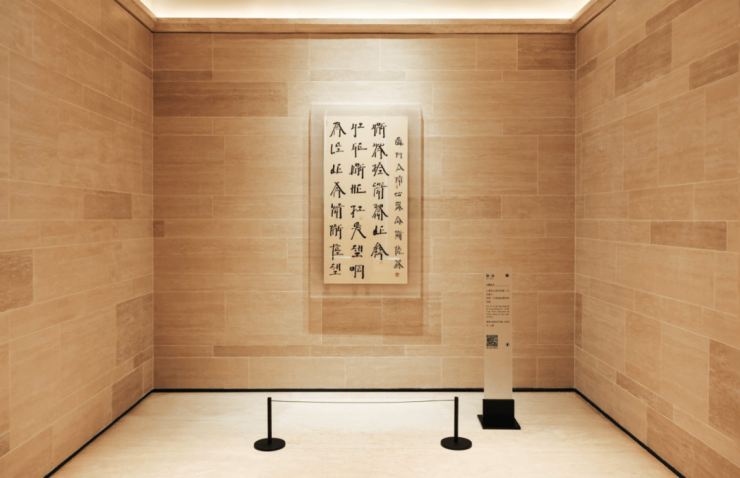 从吊顶逐渐落到地面,多重材质的拼接咬合,是隐藏在极致线条下的高难工艺。