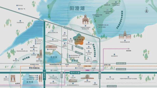 阳澄、青剑湖、翡翠湖围合坐落,阳澄湖湖滨生态体育公园、翡翠湖生态公园等环伺。众多俱乐部资源丰富,聚合成年轻活力的社交秀场。