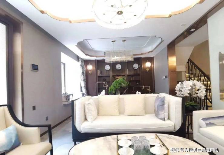 样板间一层层高3.3米,整个客厅南向开间6.7米,空间尺度感强,迎合现代人对大空间活动公区的偏好,朝南客厅大面积落地窗直面小区万方公园实景。楼梯中间,预留了电梯井的位置,可安装户内家用电梯。