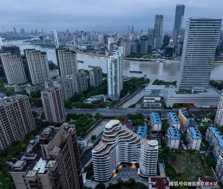 层间设置形态柔和的水平向飘带,与黄浦江流动的水体相呼应,勾勒建筑轮廓,串联立面转折、观景阳台等,消隐了传统住宅前后错动的复杂轮廓,强化建筑的整体性。