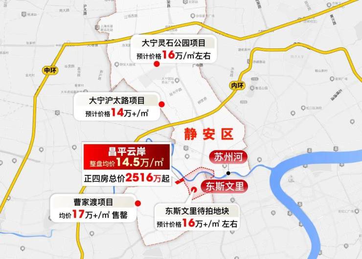 紧随其后,大宁沪太路项目预计14万+/㎡,大宁灵石公园项目更是预计16万/㎡。