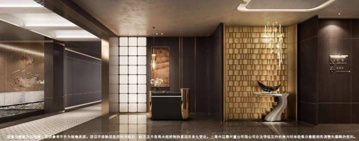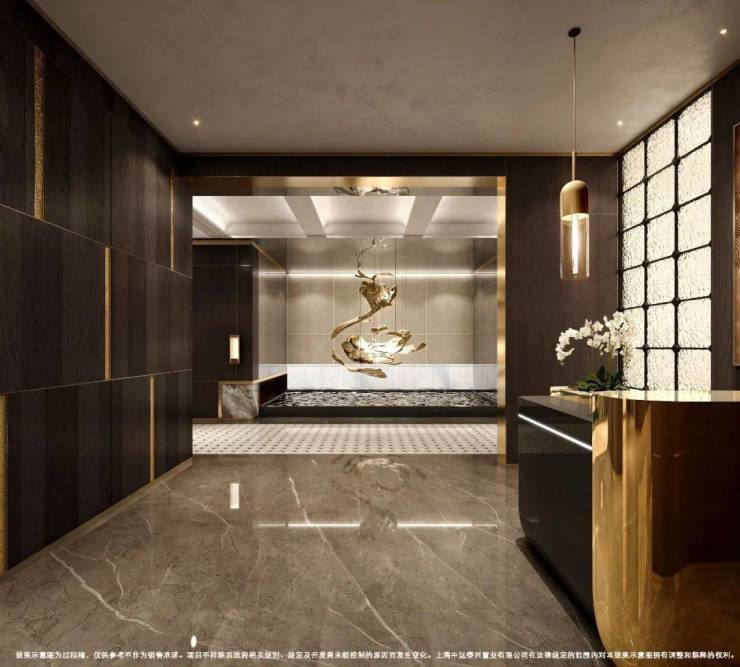 项目一楼设计星级入户大堂,挑高穹顶之下,天然石材与金属线条交织出当代艺术馆般的恢弘气度。这里不仅是归家的第一重仪仗,更是名流圈层的社交艺术厅,精致的皮革沙发休憩区,也能成为您会客洽谈的隐贵主场。