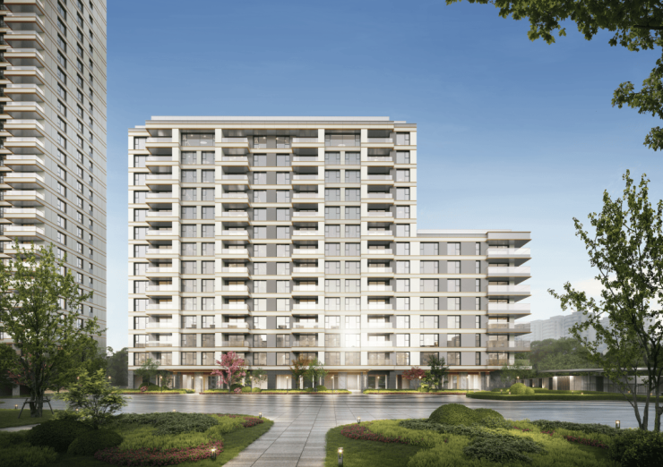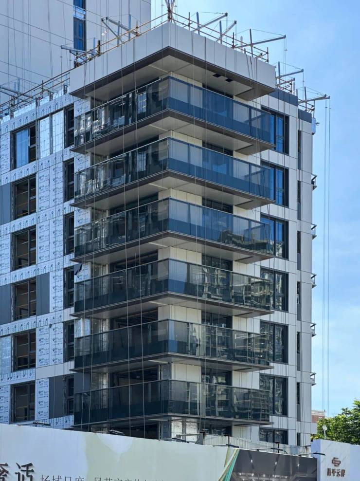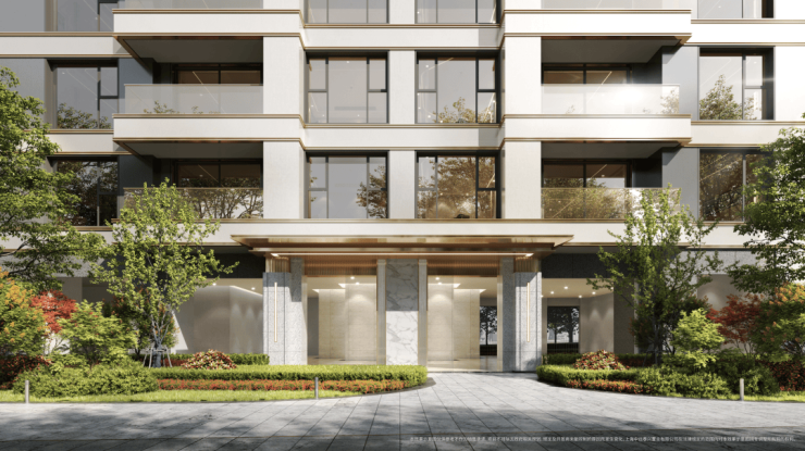 如果把镜头拉近,你会看到项目的立面设计删繁就简,玻璃与铝板外立面简洁干练而不失典雅,用简洁明了的线条勾勒出整体的效果,从而减少外立面对于室内空间的的阻碍和遮挡,整体看起来简约大气,同时提升业主居住的舒适感。