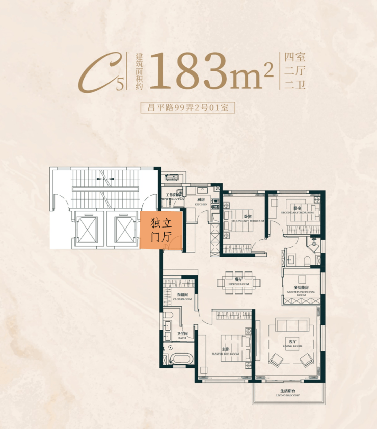 市面上不少新盘项目都是共用电梯前室,业主隐私或多或少受干扰。而昌平云岸是准1梯1户的梯户比配置,业主能拥有相对独立的前室,梯门一开,家的温暖迎面而来,家的玄关尺度,延伸至电梯厅。不仅出入更具尊贵感、仪式感,也方便收纳、种植花草、存放出入工具等。