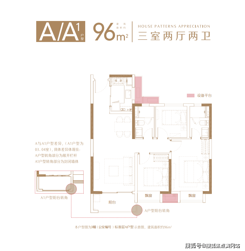 本项目备案名:璟禧云庭(北区住宅),璟禧生活广场(南区整个地块含住宅),璟禧商务中心(北区超高层+办公+沿街商业),开发商:苏州骏恒房地产开发有限公司;本户型图为3幢楼(公安编号)标准层A户型图,建筑面积约96平米,建筑面积为估算,相同户型单位因楼栋、楼层、单元等差别,局部结构、细部尺寸,面积等可能不同;户型图中的装修装饰、家居布置、空间布局等仅为示意,不作为实际交付标准或合同样品;本资料仅为要约邀请,不构成出卖人的要约或承诺,买卖双方的权利义务以双方签订的《商品房买卖合同》及其补充协议为准;相关宣传内容不排除因政府相关规划、规定及出卖人分期规划、未能控制等原因而发生变化,如有修改、调整恕不另行通知,敬请留意较新宣传资料。