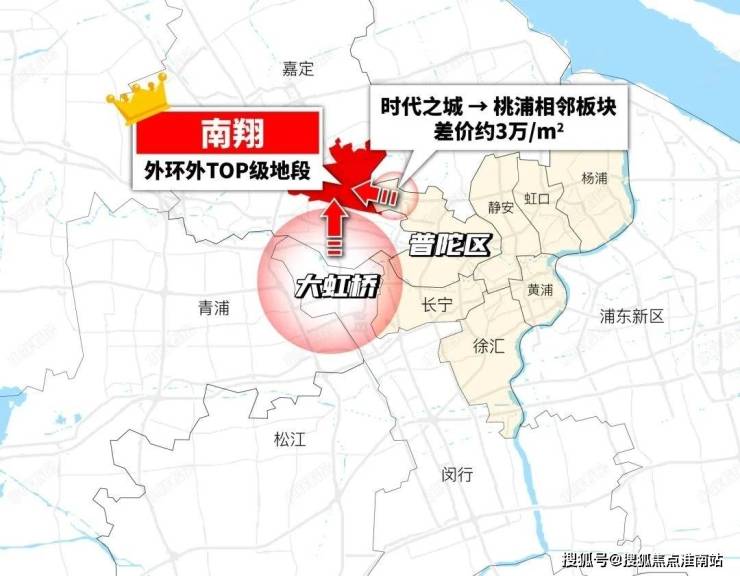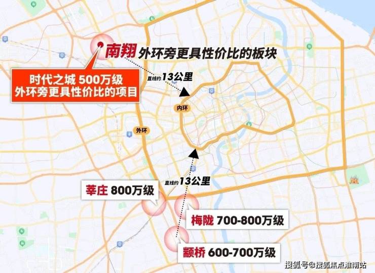 南翔到内环直线距离与闵行颛桥相当,颛桥新房总价600-700万级,时代之城500万级。