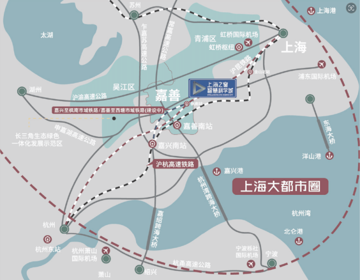 通过“2高3轨2路”网络(G60沪昆高速、申嘉湖高速;示范区线、嘉兴至枫南市域铁路等)构建30分钟浙沪通勤圈。 2