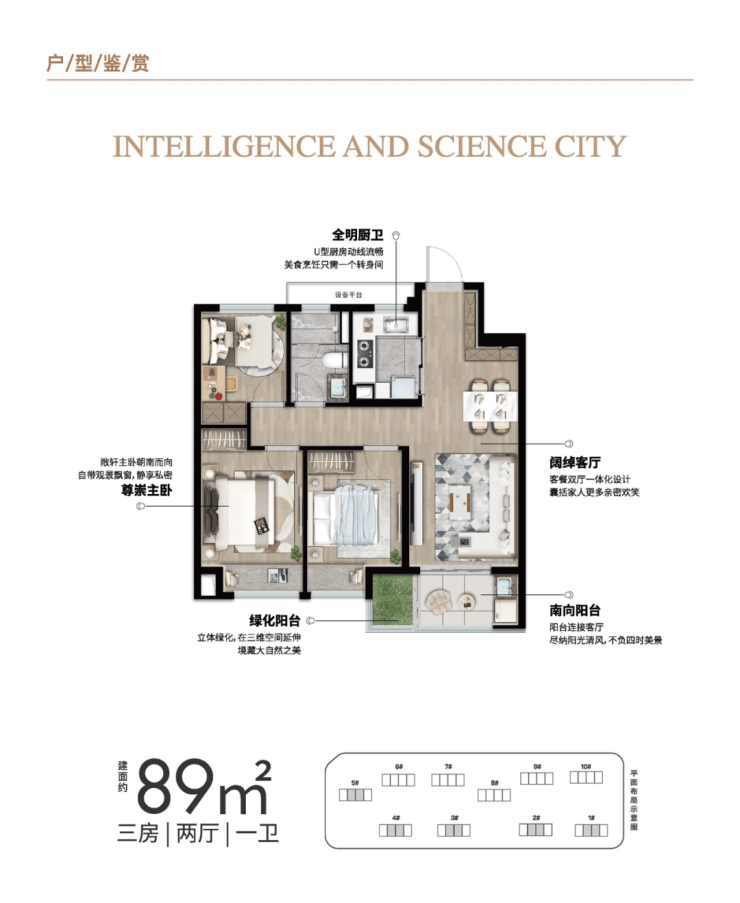 建面约89-160㎡金装品质住区新品上市,每种户型额外带有绿化阳台。