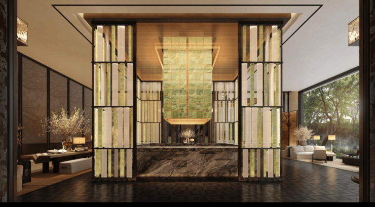 9️⃣四进归家,门庭礼序:首入约88米地标门厅,以苏州首座大尺度流光宝顶与铂金长屏,营造酒店式落客体验。再经约500㎡归家门庭,双瀑环抱,顺风顺水。穿越会所,经由两大归家花园与架空花园步入家门,层层递进,彰显门第尊荣。