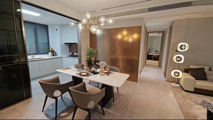 客餐厅相连的大横厅,匹配同尺度超大面宽阳台,室内阳光满溢。