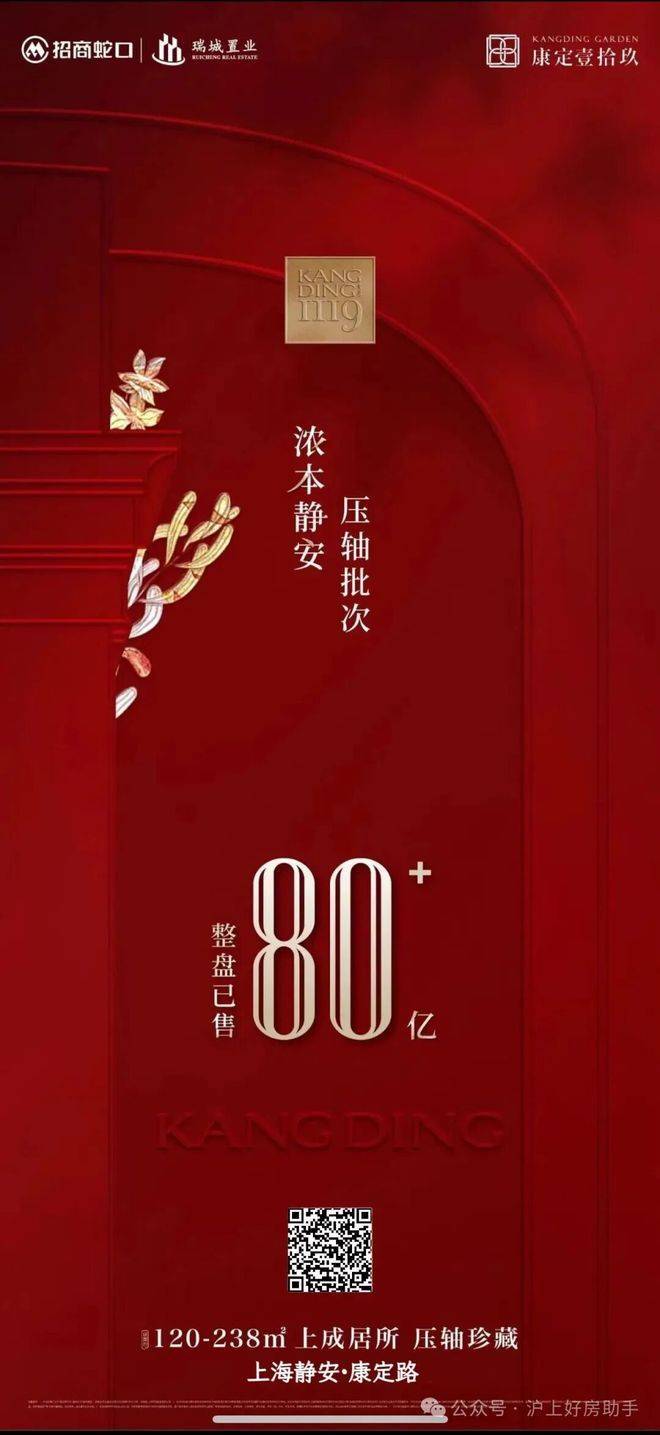最新消息:康定壹拾玖三批次加推123-238㎡3-5房在售,均价17.18万/㎡,项目作为静安老城区稀缺产品,在细节及产品力上受到广大上海顶豪客户的喜爱,目前少量房源在售,样板间线上预约中!