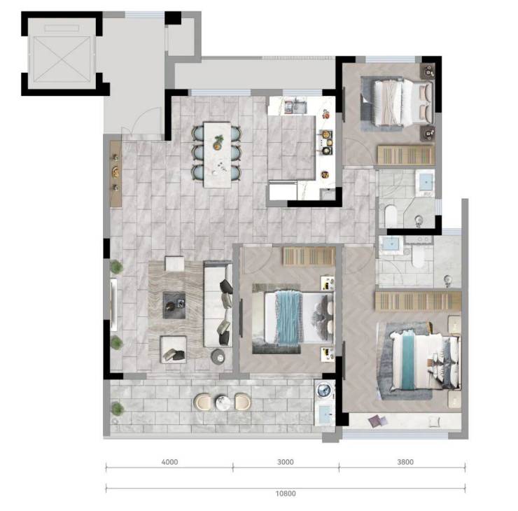而大三房的设计,更充分考虑了居住的舒适性,卧室最小3米开间,而主卧就更大了。