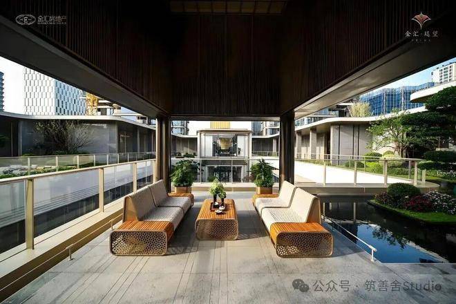 金汇·廷望,以立体垂直度假园林,谱写一曲当代江岸园林的华美诗篇。循水为脉,依势造境,融合桥、石、松、岛等东方意蕴,描绘出一幅流动的立体画卷。蜿蜒水景、休憩平台与叠水瀑布,富春山居的“景中筑园、园中筑景”在此焕新,生活如诗,如画,似一场静谧入心的归栖之旅。