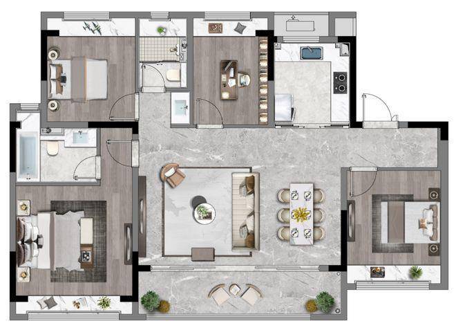 3、板块首个真改善!约119㎡-136㎡全系四房+精装,首套即到位~