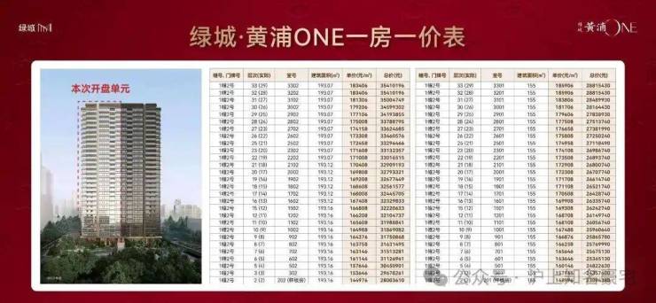 一步新天地的 "绿城黄浦ONE二期即将收官开盘,最后56套建面约155-193㎡3-4房