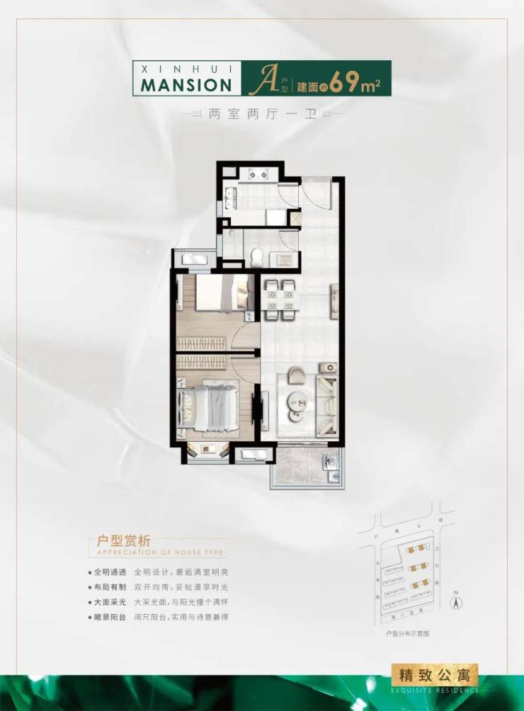 得房率:约80%,二梯二户