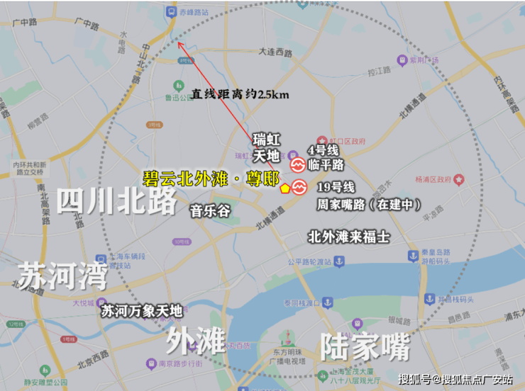 区位:虹口内环北外滩核心腹地,直线距离黄浦江约1公里,毗邻瑞虹新城与北外滩核心区
