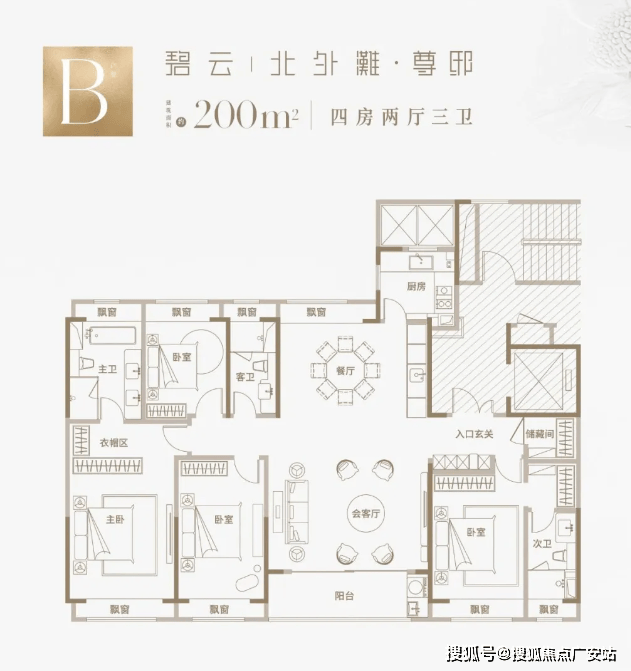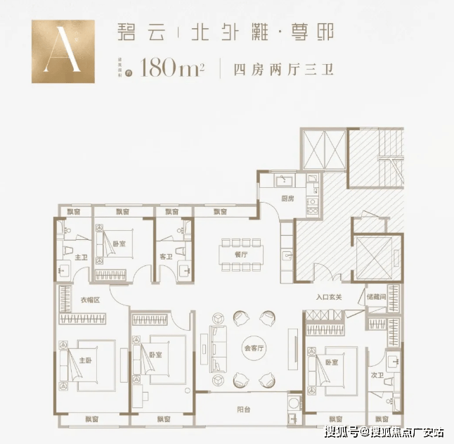起步即巅峰的纯改善奢阔四房,户型格局基本相同,均为双套房设计、南北通透的飞机户型!