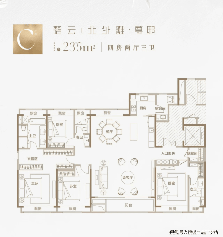 项目少量建面约235m²4房户型在售