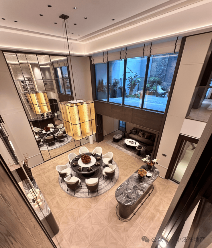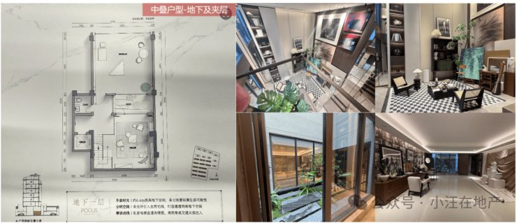 下叠地下室层高约6.6米(3.5米夹层+约3.1米地下层),总面积超约200㎡,样板房挑空设计,通过夹层下采下沉庭院采光,保证了地下空间的明亮和通风干燥。