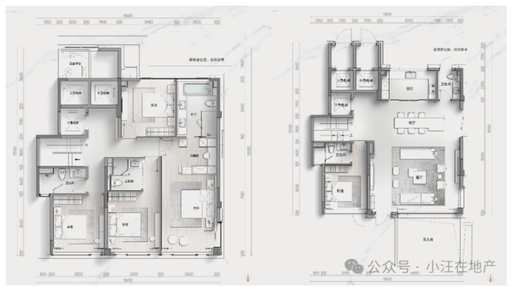 🔺布局方正且空间尺度舒适:中叠地上部分为五房五卫格局,边套主卧面宽达11.6米,餐客厅面积超60㎡,单层使用面积达110㎡。