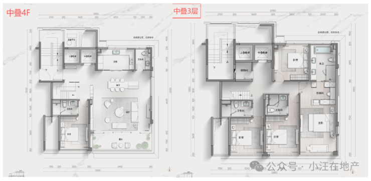 2竖向升级:优化竖向布局,实现静层相邻,上、中、下叠产品彻底动静分离,互不干扰,提升私密性与舒适度。