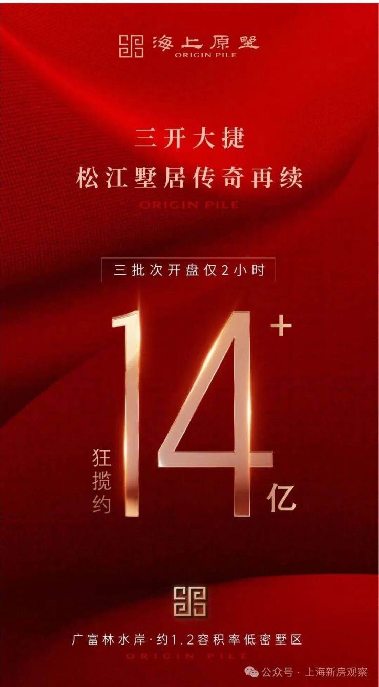 9月7日,【国贸海上原墅】三批次盛大开盘,2个小时销售总金额超14亿,再次以璀璨高光领耀松江的独立行情。
