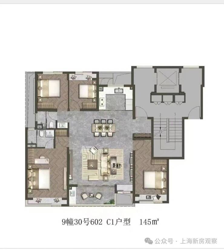 叠院独立化:建面约141-150㎡上下双叠,有别于市面上的6层叠墅,4层上下双叠居住舒适度更高,独立电梯入户、极致窗墙比设计,更加匹配世家的尊崇身份。