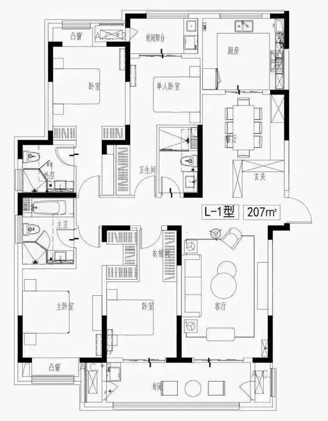 刚需房就要考虑三代人同住或者一家四口居住对房间数量的要求,这样考虑的话,房子最少应该是三居室,那89㎡的紧凑型小三房就更合适。
