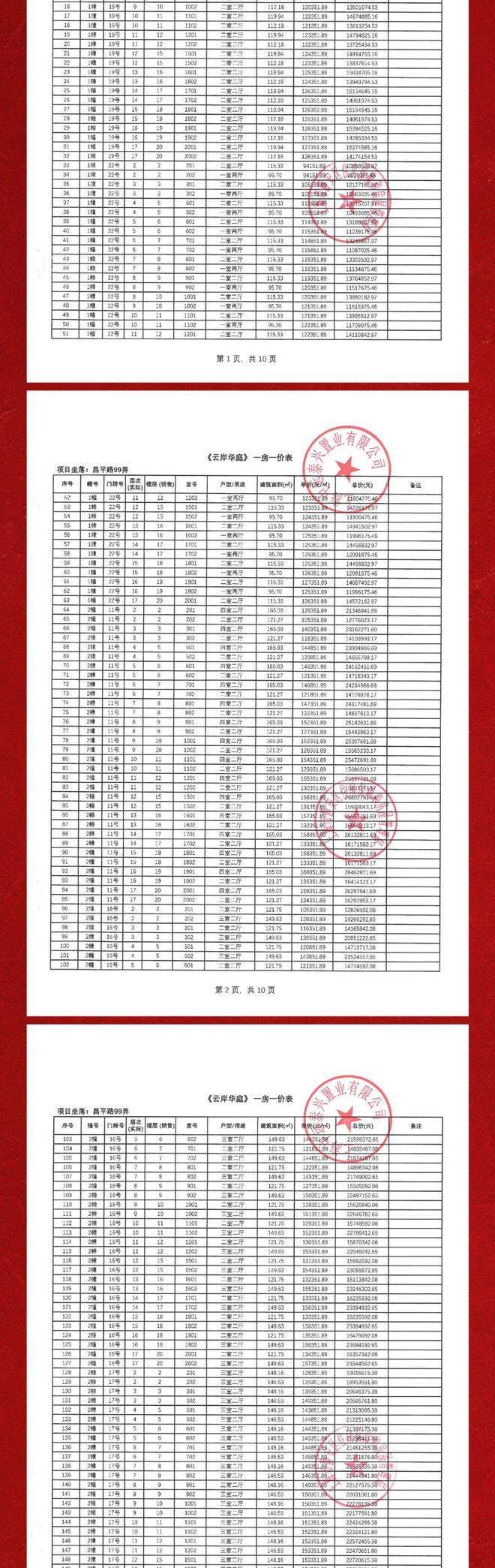 一房一价表如下