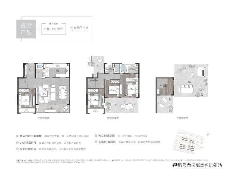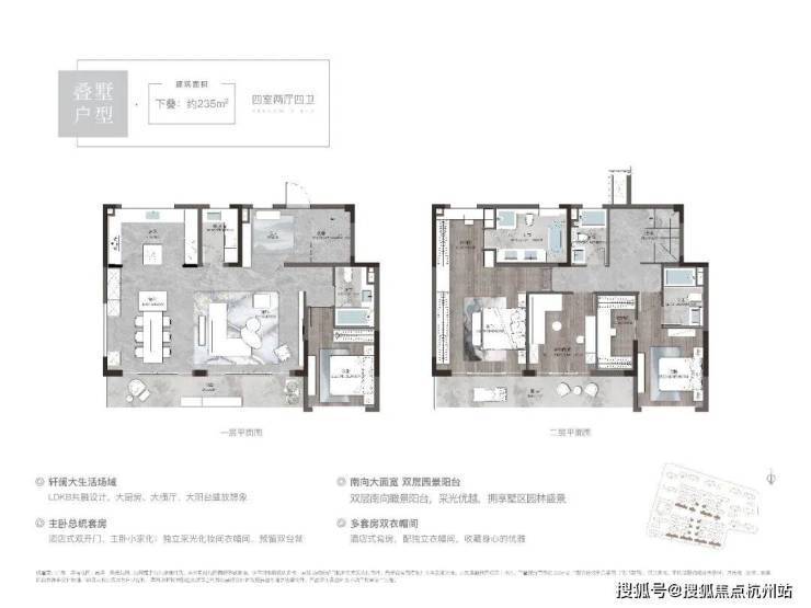 作为全新四代墅区,溪前雅居定位改善,整盘打造了大量的叠墅产品,户型起步建面约170㎡,最大做到了约235㎡,这样的大户型社区,可以最大程度保证圈层的纯粹性。
