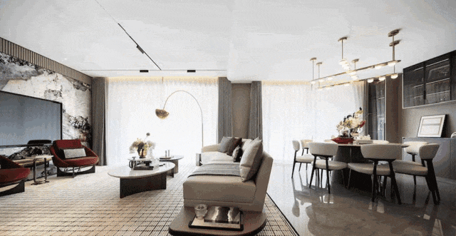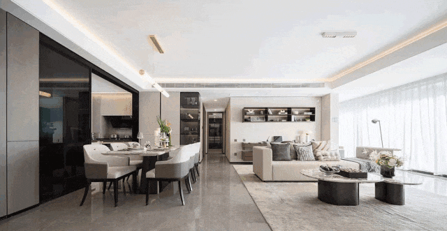 社区的设计思路是以安缦、丽思卡尔顿等精奢酒店的生活方式为标准,营造出极致松弛感的氛围。内部园林更是采用了现代手法,呈现出一个富有层次感与美感的社区。