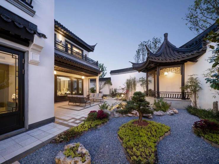 蓝城桃李春风契合了“天人合一”的居住理念。用通透的空间关系,实现人与自然的完美融合,也更符合当代人的居住哲学。走进任何一户人家,站在院子内,首先映入眼帘的是远山的一抹绿色。月门、花窗、雕栏、水钵......千年的文化积淀,皆融于中式建筑的种种细节之中。每一个细节,都印刻着中国古典传统文化的缩影。