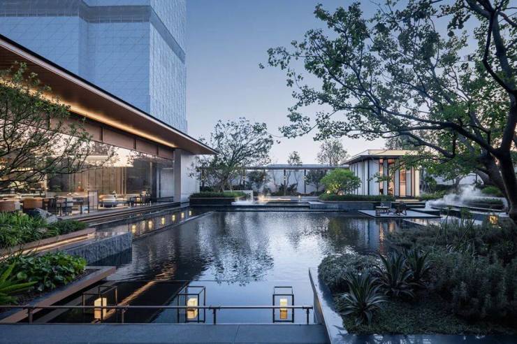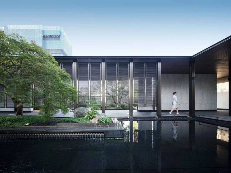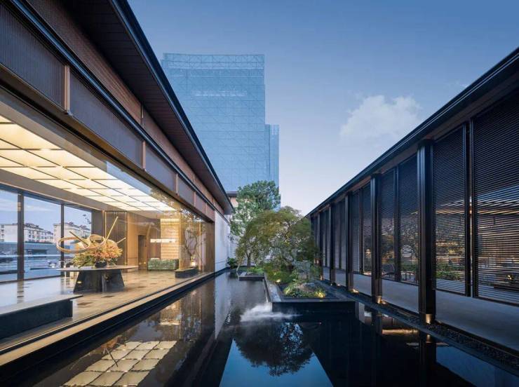 本案位于高新区花园路一侧,设计师以“移步换景”和“依水而筑”为灵感,将园林的诗意融入建筑设计中,营造出现代功能与美学体验相融合的空间。方寸园林融合现代东方美学与雅致,园内山海交融,融合了千姿百态的自然景色和四季的烂漫,既有古雅静谧的传统园林特色,又展现出山海气象的开阔意趣,在空间中重新演绎了独具东方韵味的设计风格。