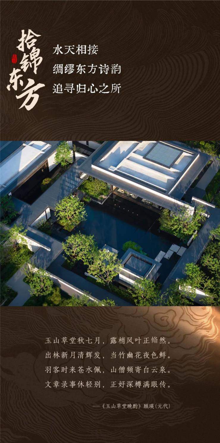 昆山·拾锦东方摆脱了现代快速、喧嚣的生活节奏,享一抹清闲,拾一方雅致;汲取了《玉山雅集》的精髓,融合人们对东方诗意生活的深切向往,揽一身清新世外桃花源。