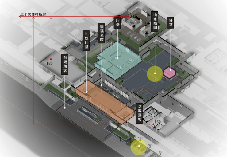 整个示范区布局深受苏州园林启发,门堂、厅堂和轩堂错落有致地分布其中,山水隐园与连廊围合出“园”的空间意向,创造出丰富的层次和深度,空间体验舒适而自然。
