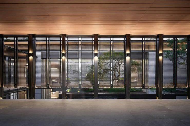 通过灵活运用连廊、屏风和墙体的各异质感和肌理,树影婆娑舞动,于有限的空间内蕴藏无尽的东方韵味。