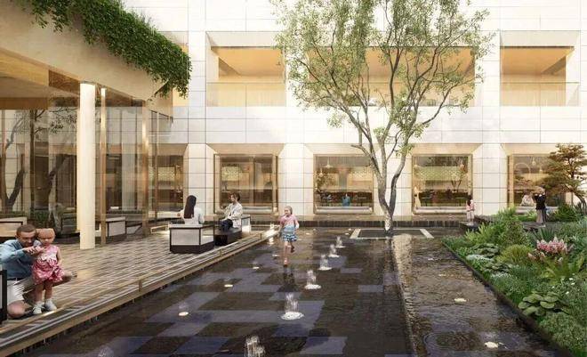 下沉式庭院:约2200㎡立体景观聚场,庭院与地面绿意交叠;既是社交沙龙的艺术剧场,亦是独坐观云的沉思之境;