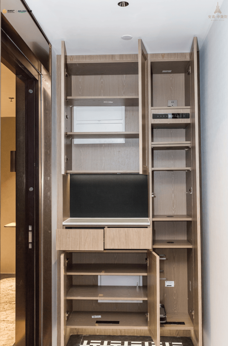 进门就是独立玄关设计,打开门别有洞天,细致的功能分区,让客户回家第一时间完成物品收纳盒鞋帽更换。