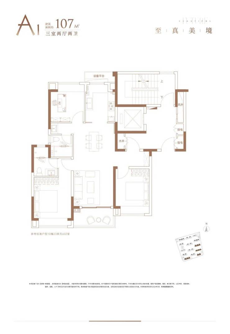 1)建面约107㎡三房两厅两卫——实用性的王者