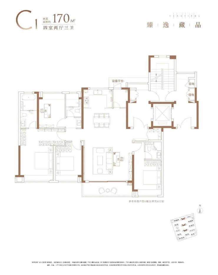 3)建面约170㎡四房两厅三卫——尺度感的王者