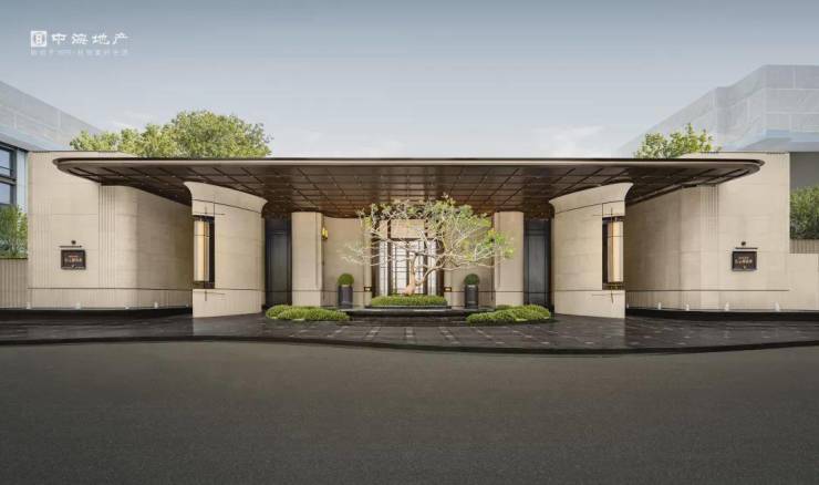贵阳路上,中海云邸玖章实景的辨识度非常高。约55米宽的大门头,两侧景墙分别做到了约4米,中间的红果迎客松高约7米,比两层楼加起来还高!