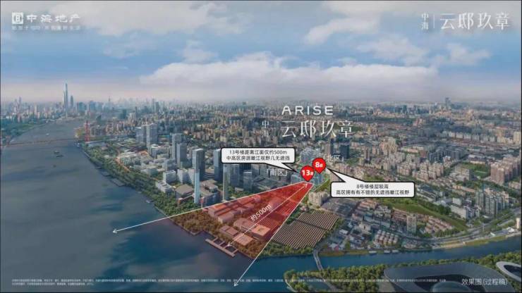 从景观视野来看,8号楼楼层较高,高层拥有无遮挡的江景视野;而13#,距离江面仅有约500米,正面瞰江,拥有一线江景视野!