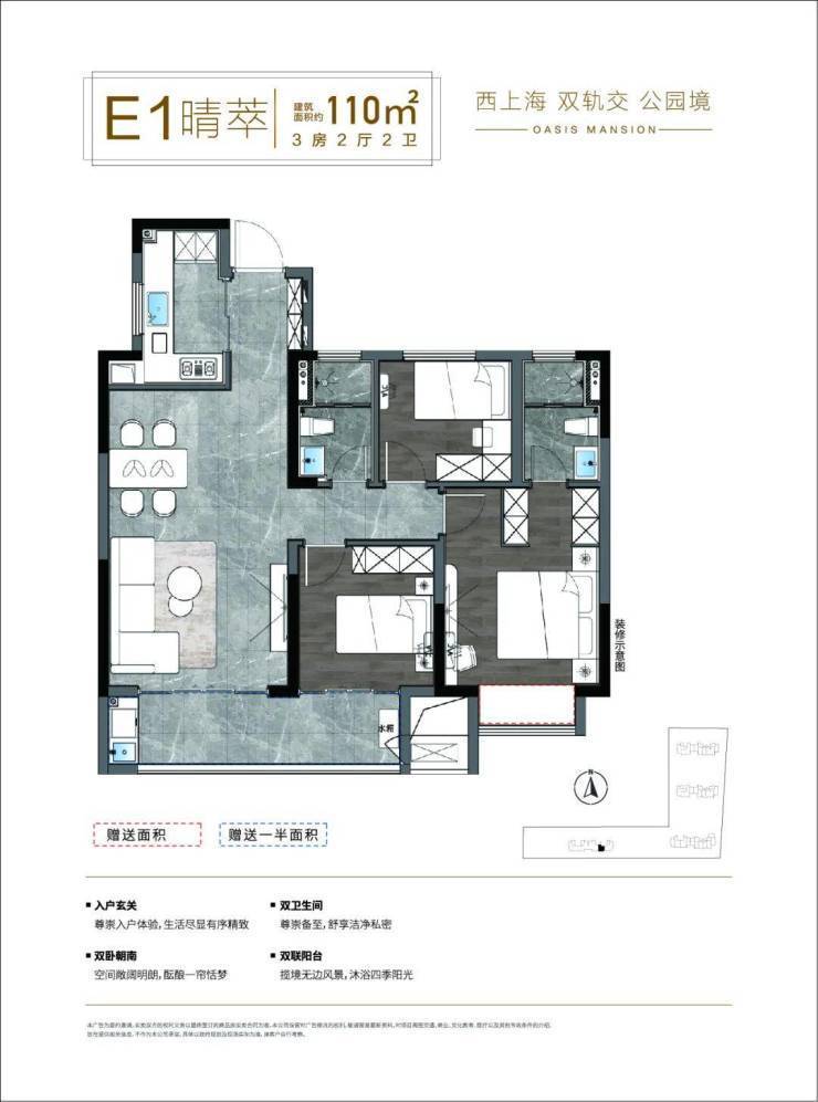 建筑面积约80㎡–110㎡装修美宅,配备新风、中央空调(“中空”建议写为全称),细节打磨品质生活。