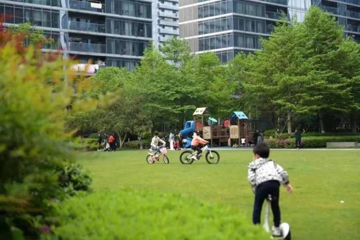 绿城,在春晓园引入了最新的草坪技术,不管是草卷的厚度,还是科学的盲管排布,最终带来的结果就是可以在草坪上自由的散步、踢球、飞盘,甚至在小区内露营。