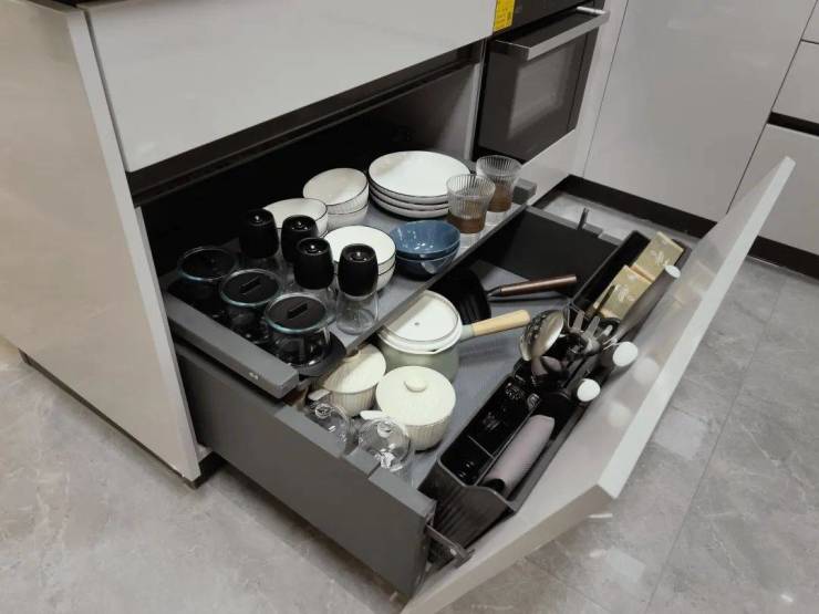这里可以说是2个细节,岛台默默地为家庭增加收纳空间;