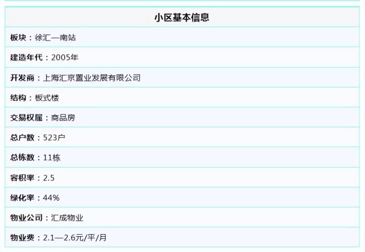 【汇京佳丽苑】小区建于2005年,位于石龙路999弄;它最大的资本就是其无可替代的地理位置和成熟的周边环境。是上海徐汇区一个非常典型的“地段+品质”型住宅小区,通身大理石铺制,小区24小时有安保巡逻,物业负责认真,严格停车管理,定期清扫,出入人员严格登记。凭借良好的维护和管理,它依然是该区域内极具竞争力的宜居选择。