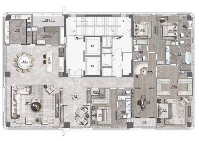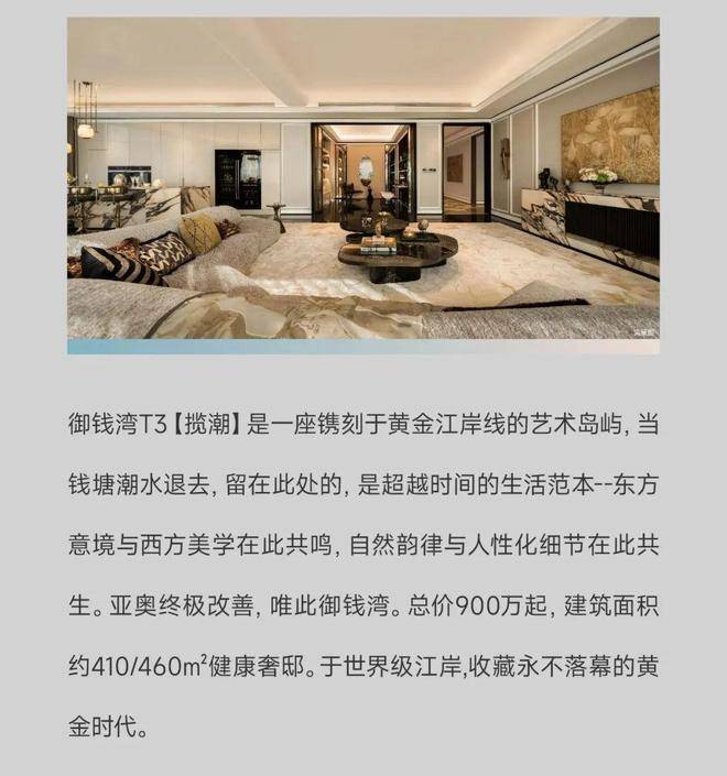 梁志天&上海世尊共同执笔:410㎡湾潮户型:WSD上海世尊团队执笔,以独一无二的“摩登东方”设计语言,抽象提取东方写意精神,与复古摩登、自由艺术平衡相融,领潮钱湾黄金时代。