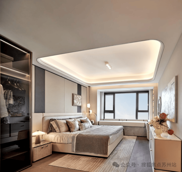 LDKB设计打造的洄游动线让空间利用率肉眼可见:从厨房取菜到餐厅上菜,从客厅陪孩子玩耍到阳台晾晒衣物,动线流畅无阻隔。更贴心的是“三代同堂互不扰”的布局,独立的南向次卧套房与主卧套房分厅而立,年轻人深夜看剧不影响老人休息,孩子早起嬉闹也不会吵醒父母,这种对家庭关系的洞察,在样板间里变成了可感知的距离。