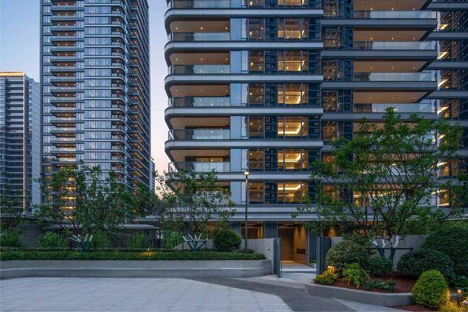 杭州壹号院以反重力立面美学,框下了城市江岸盛景,也成为杭州城市封面的独特一隅。宽域玻璃面、高品质铝板与精致的石材、金属线条、玻璃栏板型材线脚相融,以弧线、充满科技、未来都市感的建筑语言,诉说奥体中心时代之“潮”。